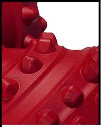 Компоненты из карбида вольфрама, имеющие определенную форму, впрессовываются в отверстия, заранее просверленные в теле шарошки. Давление металла шарошки удерживает их на месте. Аспекты конфигурации долота (профиль шарошки, угол перекоса цапфы, смещение шарошек), описанные выше для фрезерованных долот, идентичны и для штырьевых.