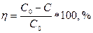 де: С0 – концентрація пилу у вентиляційному повітрі до очистки, г/м3; С – концентрація пилу у викиді (у вентиляційному повітрі після очистки), г/м3.