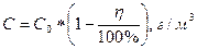 де: С – вміст (концентрація) пилу у викиді після очищення у очисній установці, г/м3; V – об’ємна витрата викиду, м3/с. 1) Розраховуємо вміст пилу у викиді, тобто його концентрацію С (г/м3)у вентиляційному повітрі після очищення. Для цього скористуємось формулою для визначення коефіцієнта корисної дії η очисної установки: