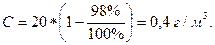 Підставляючи вихідні дані С0 = 20 г/м3 і η = 98% в формулу (3), знаходимо