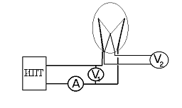 Експериментальне визначення коефіцієнту теплопровідності металів Розділ 3 В даній роботі визначалося значення коефіцієнту Відемана-Франца для платини, тобто відношення коефіцієнту теплопровідності до коефіцієнту електропровідності. Робоча установка представлена на рис.3. Термопарний манометричний перетворювач типу ПМТ-2 містить платинову нитку, що є основним елементом з відомою товщиною та довжиною. В ній відкачали повітря для нехтуванням теплопровідністю з навколишнім середовищем. До середини платинової нитки приєднана хромель-капелева термопара, показання якої знімаються на вольтметрі V2. Джерелом струму зі стабілізацією струму подається напруга на накал лампи. В наслідок цього температура платинової нитки збільшується зі збільшенням сили струму, що подається ДСС (джерело сталого струму). У роботі задавалася сила струму від 0,01А до 0,1А з шагом 0,01А. При цьому знімалися значення напруги на нитці накалу та температура на середині нитки. Опір нитки та з'єднувальних провідників змінюється з температурою як R=R0(1+g(