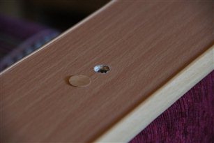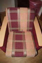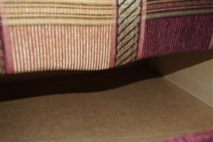 5. Облицовочный материал кресел и дивана закреплен без соблюдения симметрии рисунка, что не соответствует ГОСТ 19917 п. 2.2.7. (фото 3 и 4). Данный дефект не влияет на эксплуатационные качества мебели, но снижают её эстетические свойства. 6. Облицовочные декоративные заглушки слабо закреплены на видимых поверхностях мебели в местах, где крепежная фурнитура выступает наружу (фото 5 и 6). Данный дефект снижает эстетические и эксплуатационные свойства мебели. 7. Во внутренних отсеках, для хранения белья, обоих кресел выступают концы гвоздей, служащих для крепления донца, острой стороной внутрь отсека. Данный дефект снижает эксплуатационные свойства мебели (Фото 7 и 8). 8. Донца кресел, выполненные из ДВП, имеют большое количество мелких отверстий от крепежных скоб (фото 9). Со слов хозяйки отверстия появились после ремонта кресел. Данный дефект снижает эстетические свойства мебели. 9. Задние стенки дивана и кресел выполнены из ДВП без обработки края и небрежно закреплены (фото 10). Данный дефект снижает эстетические свойства мебели. 10. На правой боковой стенке основания дивана облицованной материалом имеется прорыв ткани от мебельной скобы. По мнению эксперта в будущем в ходе эксплуатации это может привести к дальнейшему расползанию ткани (фото 11). 11. Задняя обивка кресел имеет складки и морщины, местами ткань не закреплена, что не соответствует ГОСТ 19917 п. 2.2.7. (фото 12). 12. Элементы каркаса кресел расположенные внутри отсека для хранения белья выполнены без обработки краев (фото 13). 13. Дно в отсеке для хранения белья в диване, по мнению эксперта, закреплено не достаточно надежно (фото 14). Для дополнительной поддержки поперечной царги расположенной посередине отсека, необходимо было установить дополнительные опоры.