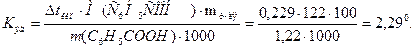 Решение. Решение. Повышение температуры кипения раствора равно Δt = 46,529 – 46,3 = 0,229о. Молярная масса бензойной кислоты равна 122 г/моль. Из формулы (1) находим эбуллиоскопическую константу