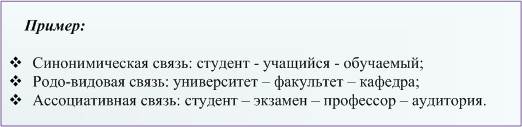 Между дескрипторами устанавливаются связи, которые позволяют расширить область поиска информации. Связи могут быть трех видов: