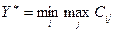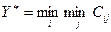 где Сij - результаты, которые будут получены по i- му варианту в j -й ситуации. В соответствии с этим критерием последовательно выполняются операции нахождения минимальных значений результатов во всех ситуациях, и затем из полученных вариантов находится тот, что имеет минимальное значение. Его номер и определит наилучшее решение. Критерий оптимистичного выбора ориентирован на правило "рассчитывай на лучший случай". Наилучший вариант определяется по формуле: