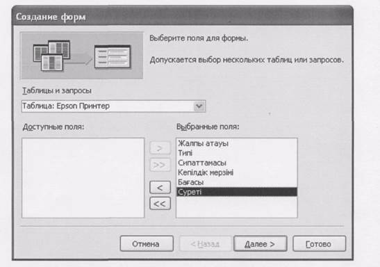 13-сурет. Деректер қоры кестесінің өрістері тізімін таңдау