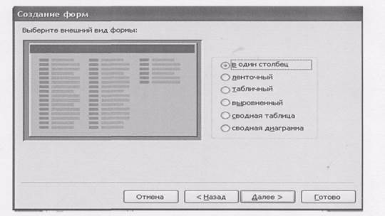 17-сурет.Шебер көмегімен деректер қорын құру үшін қажетті барлық деректерді көрсету терезесі. Готово батырмасын басқан соң, өзіңіз берген өрістермен шебер енгізудің қарапайым пішіні мен ақпаратты қарауға, сонымен бірге қарапайым есеп берулерден тұратын деректер қорын құруға көшесіз. Деректер қорын құру үрдісін аяқтағаннан кейін, дайын деректер қорын пайдалана алауға болады: кестеге деректерді енгізу, оларды көру жэне баспадан шығару.