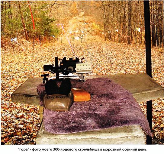 Большая часть из написанного мной применима к рэйлганам так же, как и к винтовкам, стреляющим с мешков. Но есть некоторые важные различия в стрельбе из рэйлганов, которые необходимо осветить. Я постараюсь сжато объяснить самые важные различия в установке и выносе точки прицеливания для рэйлганов в этом разделе. Установка рэйлгана начинается с основания. Установите его на стол и постарайтесь выровнять его сзади так, чтобы горизонтальная регулировка находилась в центре своего хода. Убедитесь в том, что основание выставлено по уровню. Отрегулируйте ноги как следует, наблюдая за пузырьком на маленьком уровне. Место расположения рэйлгана на столе для различных стрелков будет различным. Вам придется поэкспериментировать с этим, пока не найдете самое комфортное для вас расположение рэйлгана на столе. Так как рэйлганы выше винтовок, стреляющих с мешков, вам придется, скорее всего, сидеть чуть прямее на табурете. Я все равно рекомендую вам наклоняться вперед, чтобы смотреть в оптический прицел. Помните, что нужно установить рэйлган так, чтобы ствол выходил за пределы переднего среза стола, когда подвижная голова находится в переднем положении. Это требование правил. Как только основание выставлено по уровню, слегка придавите его вниз левой рукой, пока будете прибивать его ноги киянкой. Проверьте, чтобы все стояло по уровню. Поместите 25-фунтовый мешок с мелкой дробью на основание для добавления веса и гашения вибраций. Это не обязательно; многие хорошие стрелки из рэйлганов пропускают этот шаг. Убедитесь в том, что рельсовые направляющие и опоры чистые как на основании, так и на голове, прежде чем наносить на них смазку. Вам нужно немного поэкспериментировать с вашей направляющей прежде, чем остановиться на смазке, которую она предпочитает. Некоторые стрелки распыляют мебельный воск Pledge, другие используют капельку масла Sweet Oil, которое можно купить в большинстве аптек. Другие варят свои собственные снадобья или оставляют их сухими. Все зависит от вашего рэйлгана и материала, используемого для создания подвижной системы. Теперь возьмите голову и аккуратно поместите ее на основание. Подвигайте ее вперед и назад чтобы убедиться в том, что она скользит по основанию без заеданий в начале хода. Опять же, здесь, то, что стреляет хорошо, зависит от рэйлгана, некоторым нравится скольжение, другие стреляют с небольшим сопротивлением. Одним из распространенных факторов является то, что ни один из них не любит стрелять, когда имеет дерганный старт. Дерганный старт часто приводит к проблемам с вертикалью. Некоторые стрелки прикрепляют кусок дерева к столу непосредственно перед основанием рэйлгана. Это разрешено правилами. Прикрепленный кусок дерева эффективно останавливает рэйлган от скольжения вперед. Сядьте, отрегулируйте табурет так, чтобы вам было комфортно, и затем смотрите в оптический прицел. Используйте главную вертикальную регулировку для нахождения рамки мишеней и горизонтальную регулировку для нахождения вашей мишени. Законтрите все ноги и главную вертикальную регулировку. Законтрите их плотно, иначе ваши выстрелы будет разбрасывать по всей мишени! Толкните голову вперед до переднего останова несколько раз, наблюдая при этом в оптический прицел. Это не плавный легкий толчок, но и не жесткий удар. Это достаточно жесткий толч