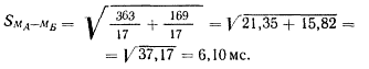 SmА-mБ называется стандартной ошибкой разности между средними. Использование термина стандартная ошибка вместо стандартного отклонения показывает, что мы вывели стандартное отклонение, а не пришли к нему через (невозможные) бесконечные вычисления. Заметьте, что здесь используется S, а не σ̅. Это потому, что популяционный параметр σ̅ МА—МБ оценивается на основе выборочных статистик. Для вычисления в формулу просто подставляют величины S2A и S2Б, полученные нами в предыдущих статистических приложениях. Так,