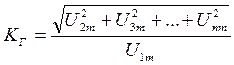 где U1m, U2m, U3m, Unm – амплитуды 1-й (основной), 2, 3 и n -ой гармоник выходного напряжения соответственно. Величина