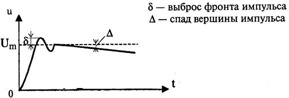 Рис. 9.7. Переходная характеристика усилителя Области верхних частот соответствует переходная характеристика в области малых времен, области нижних частот – переходная характеристика в области больших времен.