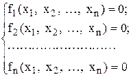 На відміну від систем лінійних рівнянь не існує прямих методів розв‘язання систем нелінійних рівнянь (СНР) загального виду. Для наближеного їх розв‘язання використовують ітераційні методи. Найбільш поширеними з них є метод ітерацій і метод Ньютона. Метод ітерацій для СНР по суті є узагальненням методу ітерацій для одного рівняння. Нехай для обчислення невідомих х1, х2, …, хn необхідно розв‘язати систему n нелінійних рівнянь