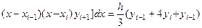 Проведя такие вычисления для каждого элементарного отрезка [ хi-1, хi+1 ], просуммируем полученные выражения. Результат суммирования записывается следующим образом: