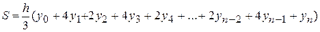 Выражения для S принимается в качестве значения определенного интеграла (формула Симпсона):