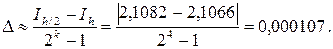 Обозначим через I h и I h/2 приближенные значения интеграла, определенные с шагом h и h/2. Тогда абсолютная погрешность интегрирования приближенно оценивается по формуле (правило Рунге):