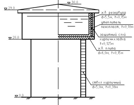 Рис. 5. Расчетная схема безшатровой кирпичной водонапорной башни.