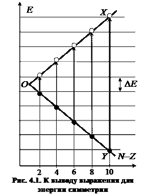 4.1. Энергия симметрии в ОМО. Объяснение закономерностей, связанных с магическими числами, стало далеко не единственным успехом ОМО. Так, например, одним из слагаемых в формуле Вайцзеккера для энергии связи ядра является энергия симметрии. Эта поправка, эмпирическая в рамках капельной модели, находит свое объяснение в ОМО.