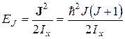 а) Вращательный спектр. Система частиц, движущихся в сферически симметричном потенциальном поле, не может иметь вращательного спектра энергий.[35] Следовательно, сферическое ядро не имеет вращательных степеней свободы, а в случае несферического ядра в форме эллипсоида возможны лишь вращения вокруг осей x или y (см. рис. 4.4).[36] Для простоты рассмотрим четно-четное ядро, спин которого в основном состоянии равен нулю. Если такое ядро вращательно возбуждено, его спин полностью обусловлен вращением. Энергия вращательного движения