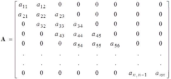 Якщо в матриці D всі елементи рівні між собою Одинична матриця. Якщо в діагональній матриці Е = Одинична матриця в матричному численні відіграє роль, у деякій мері, аналогічну одиниці в скалярних арифметичних операціях. Нульова матриця. Матриця, всі елементи якої дорівнюють нулю, називаються нульовою. Позначається нульова матриця цифрою нуль: 0. Зауважимо, що нульова матриця може мати будь-який розмір m × n на відміну від одиничної, яка завжди квадратна. Стрічкова матриця. Якщо в квадратній матриці порядку m відмінними від нуля є лише елементи, розміщені на головній діагоналі, і на прилягаючій до неї з кожної сторони (зверху і знизу) k рівнобіжних лініях, то така матриця називається стрічковою, із шириною стрічки k: