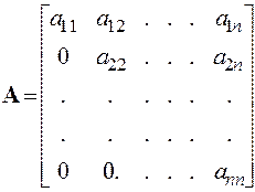 Верхня і нижня трикутні матриці. Квадратна матриця називається верхньою (нижньою) трикутною, якщо всі елементи, розташовані під (над) головною діагоналлю дорівнюють нулю: