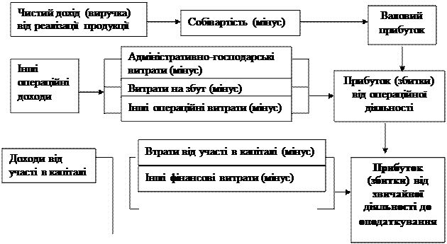 4.1. Порядок оцінки фінансових результатів діяльності підприємства (прибутків, збитків) Схему формування основних показників, що визначають фінансові результати (прибуток, збиток) підприємства, наведено нижче.