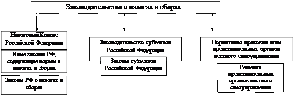 Рисунок 3. Законодательство о налогах и сборах Законодательство РФ о налогах и сборах состоит из Налогового Кодекса РФ (НК) и принятых в соответствии с ним федеральных законов о налогах и сборах (рисунок 3).