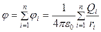 Если поле создается несколькими зарядами, то потенциал поля системы зарядов равен алгебраической сумме потенциалов полей всех этих зарядов.