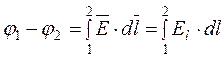 Разность потенциалов определяется работой, совершаемой силами поля при перемещении единичного положительного заряда из точки 1 в точку 2