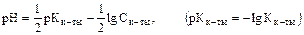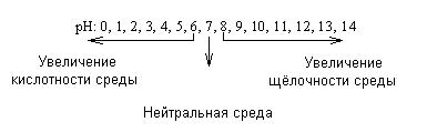 Водородный показатель рН служит для количественного определения среды растворов. Его выводят, учитывая характер диссоциации чистой воды: H2O Û H+ + OH-. При температуре 22°С в чистой воде [Н+] = [ОН-] = 10-7 моль/л. Отсюда Равенство [Н+] × [ОН-] = 10-14 моль2/л2 справедливо не только для чистой воды, но также для растворов кислот, оснований и солей и не соблюдается в концентрированных кислотах и щелочах. Понятие рН удобно в написании и произношении: величину находят по формуле