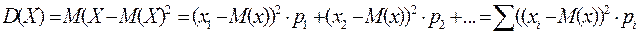 Определение: Дисперсией называется математическое ожидание квадрата отклонения значений случайной величины от ее математического ожидания, т.е.: