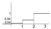 Используя формулы 5 и 6 и свойства математического ожидания и дисперсии, получаем: (10) (11) Закон распределения случайной величины может быть задан в виде функции распределения, которая тоже связывает значение случайной величины и соответствующую вероятность. Определение: Функцией распределения называется числовая функция числового аргумента F(x) равная вероятности того, что случайная величина примет значение меньше этого аргумента, т.е.: (12) 1. F(x) – неубывающая; 2. 3. 4. Пример: Найти функцию распределения и построить график для примера 1.