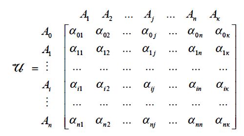 Определение. Матричной схемой алгоритма (МСА) будем называть квадратную матрицу, в которой строки соответствуют операторам A0, A1,..., An, столбцы – операторам A1, A2,..., Ak, а элементы – логические функции связи между операторами алгоритма.