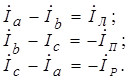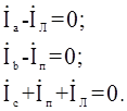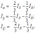 Анализ уравнения (7) показывает, что два из них являются взаимно зависимы и поэтому система (7) не определяет искомых токов. Однако, из основ электротехники известно, что в трехпроводной системе переменного тока геометрическая сумма токов равна нулю