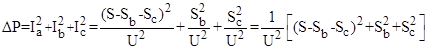 Потери мощности в каждой фазе ЛЭП определяются произведением квадрата тока в этой фазе на сопротивление провода фазы. В силу симметричности параметров ЛЭП, сопротивление проводов фаз одинаковы. Положим для простоты сопротивление каждой фазы равным 1. Тогда для определения потерь электроэнергии необходимо найти квадраты токов каждой фазы. Положим, что в самом общем случае эти токи не равны. Выразим квадрат каждого из них через фазную мощность