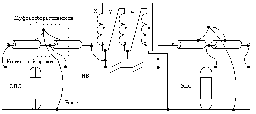 Рис. 3.30. Система электроснабжения переменного тока с коаксиальным кабелем
