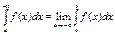 2) Підінтегральна ф-ія – непарна відносно sin x, тоді роблять підстановку cos x = t. 3) Підінтегральна ф-ія – непарна відносно cos x раціоналізується за допомогою підстановки sin x = t. 4) Підінтегральна ф-ія R(sin x, cos x) – парна по sinx, cosx сукупно, тобто R(-sinx,-cosx)=R(sinx,cosx). В цьому випадку використовують підстановку tgx=t або ctgx=t. 5) Підінтегральна ф-ія R(tgx) раціоналізується підстановкою tgx=t. В інтегралах ò sin2nx×cos2mxdx рекомендується скористатися формулами зниження степеня 21.Визначений інтеграл як границя інтегральної суми Означення: Якщо існує скінченна границя інтегральних сум Sn при lіà0 і не залежить ні від способу розбиття [a;b] на частини Dхі, ні від вибору точок xі, то ця границя називається визначеним інтегралом від ф-ії f(x) на проміжку [a;b] і позначається: