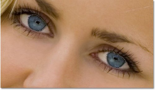 Если же вы допустили погрешность при выделении глаз инструментом Лассо (Lasso tool) то самое время это исправить. Шаг 6