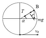 Якщо в точці B кулька зійшла з кругової траєкторії, то сила натягнення нитки, починаючи з цього моменту, стає рівною нулю і рівняння приймає вигляд: