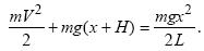 Для визначення коефіцієнта пружності пружини k скористаємося тією умовою, що встановлена на пружину гиря стискає її на величину L. Це означає, що виконується умова рівноваги kL = mg, звідки відразу слідує k = mg/L. З умови збереження енергії E 1 = E 2. Підставляючи в це співвідношення приведені вище вирази, одержуємо рівняння щодо невідомої величини х: