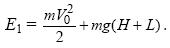 Задача 5. Тіло масою m падає з висоти H і заглиблюється в грунт на глибину L. Яка сила опору грунту F, якщо тіло почало падати з початковою швидкістю v 0? Рішення Будемо вважати, що потенційна енергія тіла в кінцевому положенні (у момент зупинки) дорівнює нулю. При русі в грунті на тіло окрім сили тяжіння діє сила опору. Робота сили опору дорівнює A = FLcos a= = - FL, оскільки кут a між напрямом дії сили і переміщенням рівний 1800. Початкова енергія тіла E 1 дорівнює сумі його кінетичної і потенційної енергій: