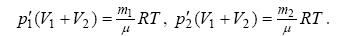 Рівняння стану газів після змішування записуються у вигляді:
