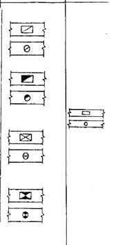 11.8. Дверь (ворота) раздвижная двупольная ! 1.9. Дверь (ворота) подъемная 11.10. Дверь складчатая 11.11. Дверь вращающаяся 11.12. Ворота подъемно-поворотные 12. Переплеты оконные 12.1. Переплет с боковым подвесом, открывающийся внутрь 12.2. То же, открывающийся наружу Наименование 11. Двери, ворота 11.1.Дверь однопольная 11.2. Дверь двупольная 11.3. Дверь двойная однопольная 11.4. То же, двупольная 11.5. Дверь однопольная с качающимся полотном (правая или левая) 11.6. Дверь' двупольная с качающимися полотнами 11.7 Дверь (ворота) откатная одно-польная Изображение