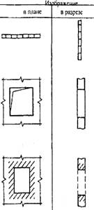 2.3. Проем в существующей стене, перегородке, покрытии, перекрытии, подлежащий заделке Примечание. В поясняющей надписи вместо многоточия указываю! материал закладки. 15. Каналы дымовые и вентиляционные 15.1. Вентиляционные шахты и каналы 15.2Дымовыетрубы (твердоегогсливо) 15.3. Дымовые трубы (жидкое топливо) 15.4. Газоотводные трубы Наименование Изображение