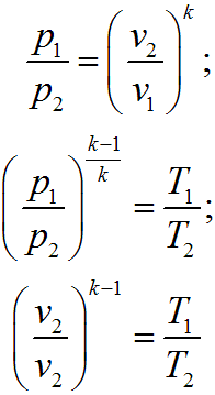 Связь между параметрами процесса определяется, используя уравнение адиабаты и уравнение состояния газа pv = RT: