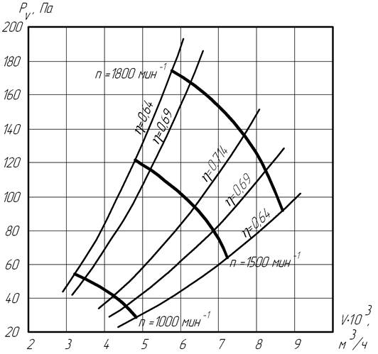Рис. 6 – Аэродинамические характеристики центробежного