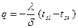 Постоянная С определяется из граничных условий, а именно: при x = 0 t = tsi= C, при x = δ t = tse. Подставим эти значения в (2.6) и получим выражение для плотности теплового потока: