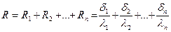 где δi – толщины отдельных слоев, м; λi – коэффициенты теплопроводности материалов этих слоев, Вт/(м · ˚C); i = 1, 2,…, n.