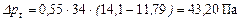 Разность давлений, обусловленную ветровым напором, определим по формуле (6.6):