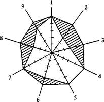 Проявляется в способности объективно характеризовать решения проблемных задач, поступки людей, события и явления. Изобретательность. Способность находить оригинальные, неожиданные решения в различных видах деятельности. Проявляется в поведении ребенка, в играх и самых разных видах деятельности. Способность рассуждать и мыслить логически. Способность к анализу, синтезу, классификации явлений, событий, процессов, умение стройно излагать свои мысли. Проявляется в умении формулировать понятия, высказывать собственные суждения. Настойчивость (целеустремленность). Способность и стремление упорно двигаться к намеченной цели. Умение концентрировать собственные усилия на предмете деятельности, несмотря на наличие помех. Проявляется в поведении и во всех видах деятельности ребенка. Требовательность к результатам собственной деятельности (перфекционизм). Стремление доводить продукт любой своей деятельности до соответствия самым высоким требованиям. Проявляется в том, что ребенок не успокаивается до тех пор, пока не доведет свою работу до самого высокого уровня. Естественно, что результат будет более объективен, если эти отметки, независимо друг от друга, поставят и другие взрослые, хорошо знающие ребенка. Поставленные отметки (либо среднеарифметические Этот график дает наглядное представление о том, в каком направлении нам следует вести дальнейшую воспитательную работу (рис. 4).
