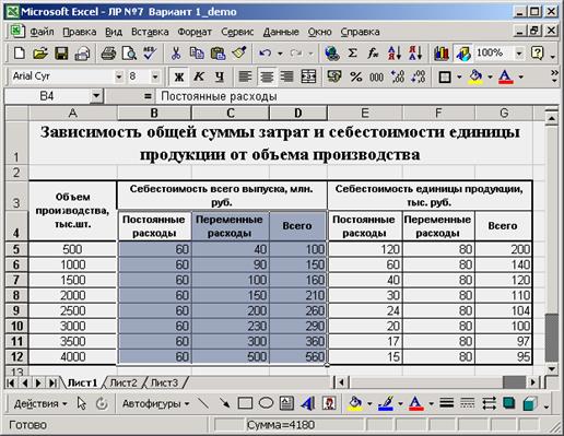 4. Построение и форматирование графиков. Набрать табличные данные. 2. Выделить область данных вместе с одной строкой заголовка как это показано на рисунке: